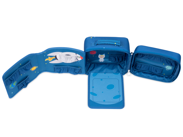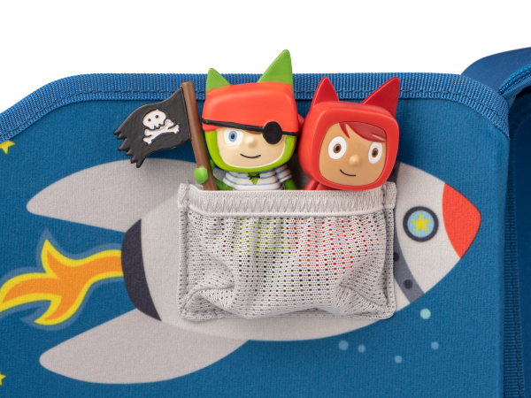Gepolsterte Innentaschen und 6 Netztaschen schützen mindestens 14 Tonies während deiner Reise.