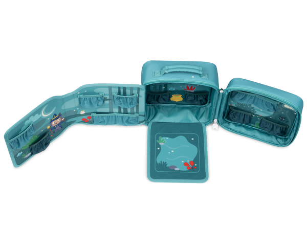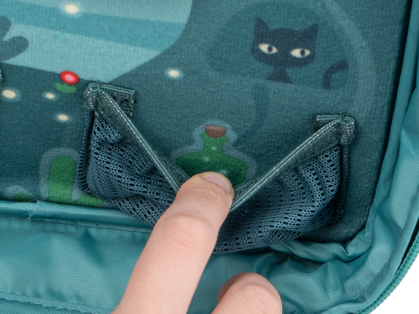 Gepolsterte Innentaschen und 6 Netztaschen schützen mindestens 14 Tonies während deiner Reise.