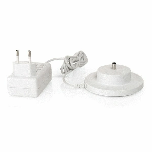Der eingebaute Akku hält ca. 7 Stunden. Zur Aufladung wird die Toniebox einfach auf das beiliegende Ladegerät gestellt.